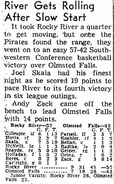 The basketball season was one of mixed results - but still some great memories. The team got off to a good start and had a 5 - 2 record going into January. Norm Beres had one interesting and rather amusing memory -